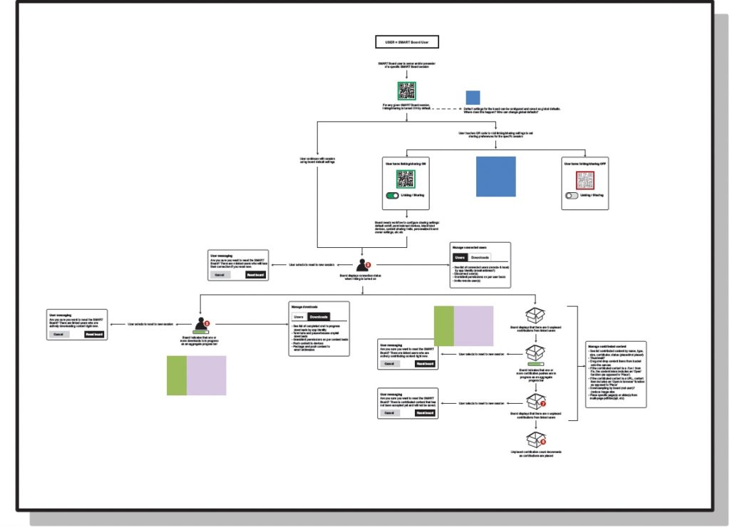 SMART desired to make the platform more useful for local meeting attendees by adding the ability to pair devices to a SMART Board to enable those paired devices to contribute content, take control of meetings, save meetings, walk away and restart a meeting with the same content on a different board, or to share meeting content with people not present. SMART tasked my product team with quickly conceiving and developing an MVP.