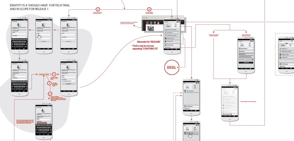 Workflows and screens were tested in a rapid, ad hoc manner where needed, resulting in changes to workflow, interaction and language — this testing was performed with stakeholders and potential users, and was performed using paper prototypes, and both static and click-through digital prototypes.